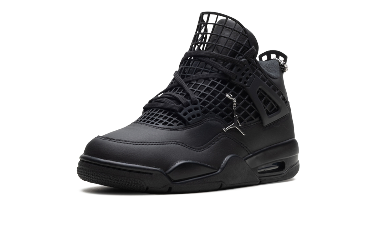 The Air Jordan 4 NET "Black" is a women's version of Michael Jordan's fourth signature shoe. The unique design of this AJ4 takes the basketball sneaker's signature netting from the side panel and extends it across the front and tongue of the shoe. The all black Jordan 4 colorway also features sleek leather panels on the upper.