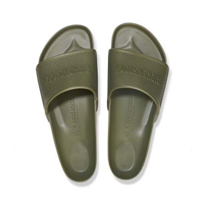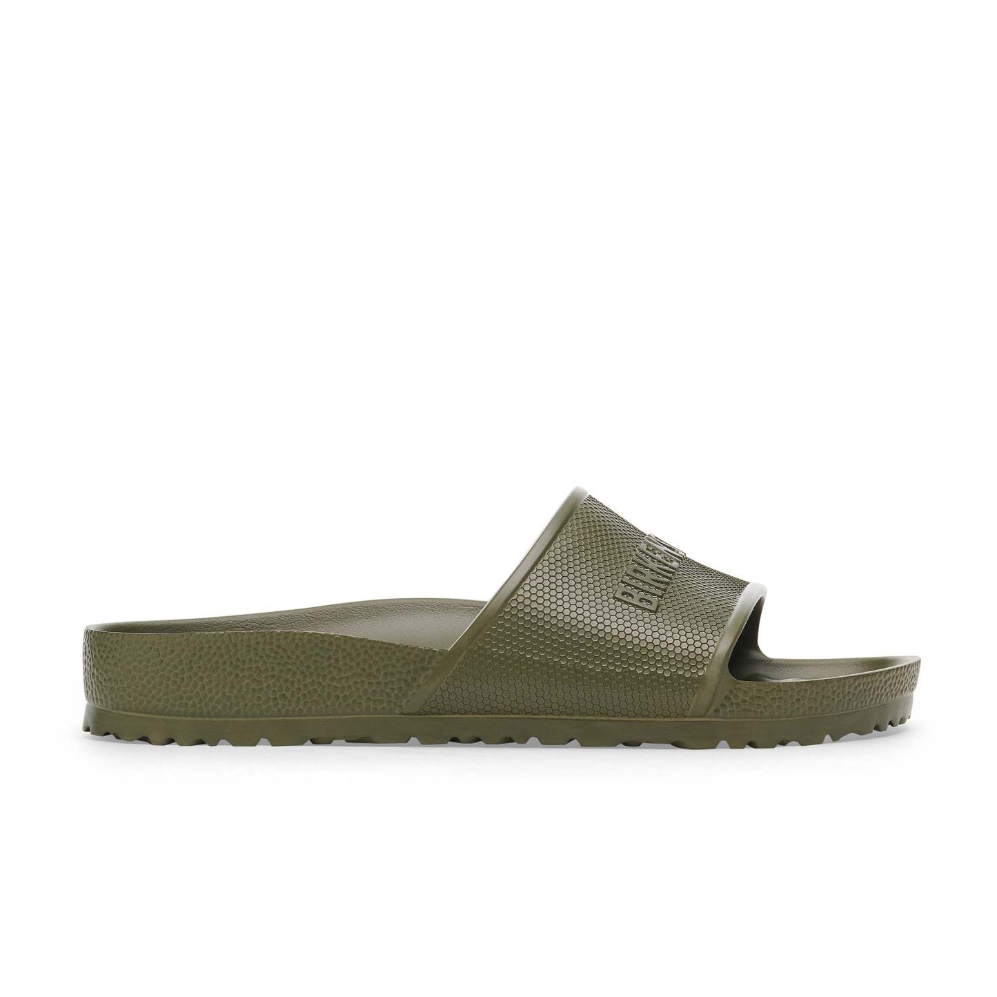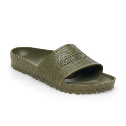 The Birthtkensthttock Barbados is a waterproof lightweight, sporty slide design with a hexagon pattern and logo lettering. Modelled on the cork sandal, this sandal is made from one piece of light, flexible and waterproof moulded EVA.