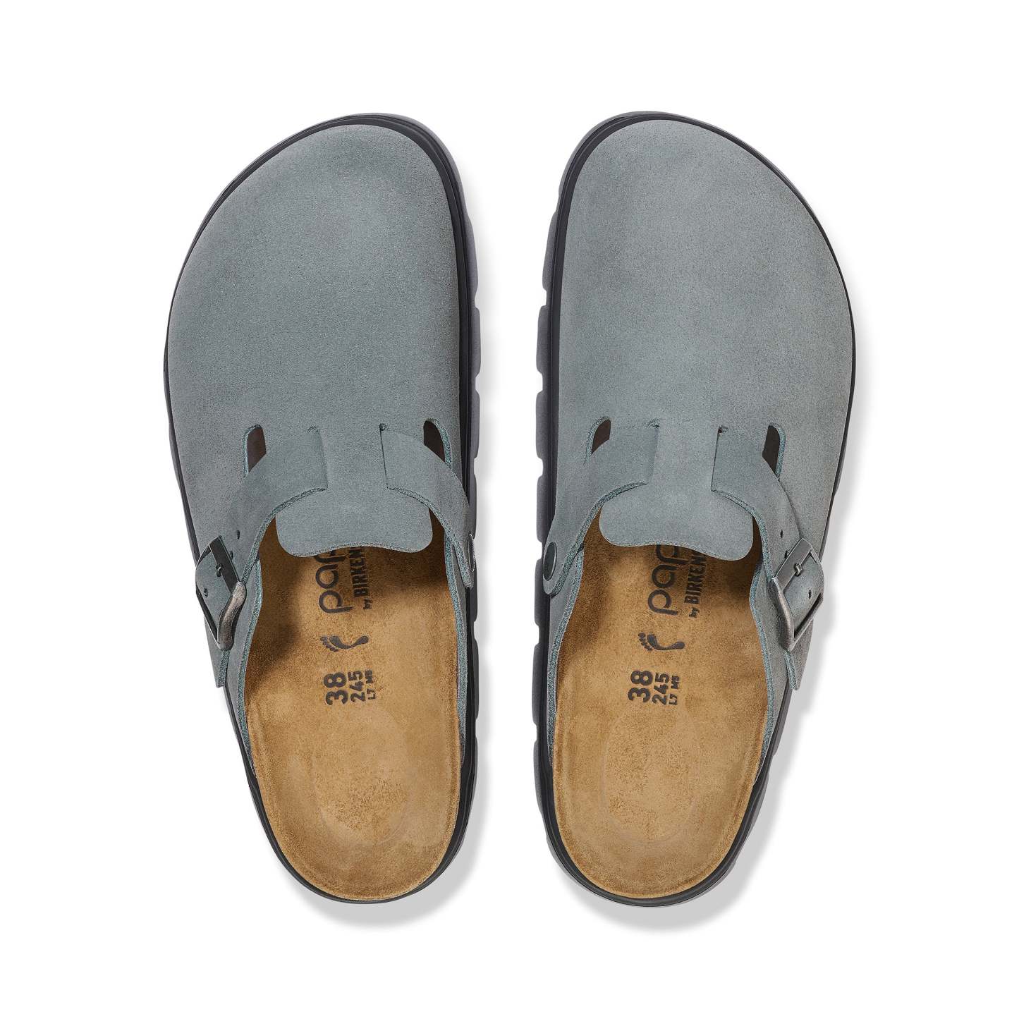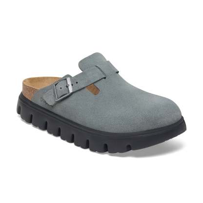 The Boston clog is a veritable classic that can easily be worn all year round. A chunky platform sole takes the clog's iconic design to new heights. Built on contoured footbed, the statement tread stands out below the classic suede upper.