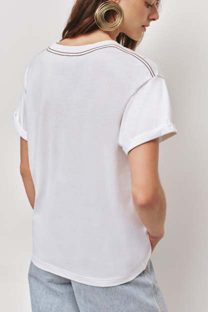 - Ribbed crew neckline