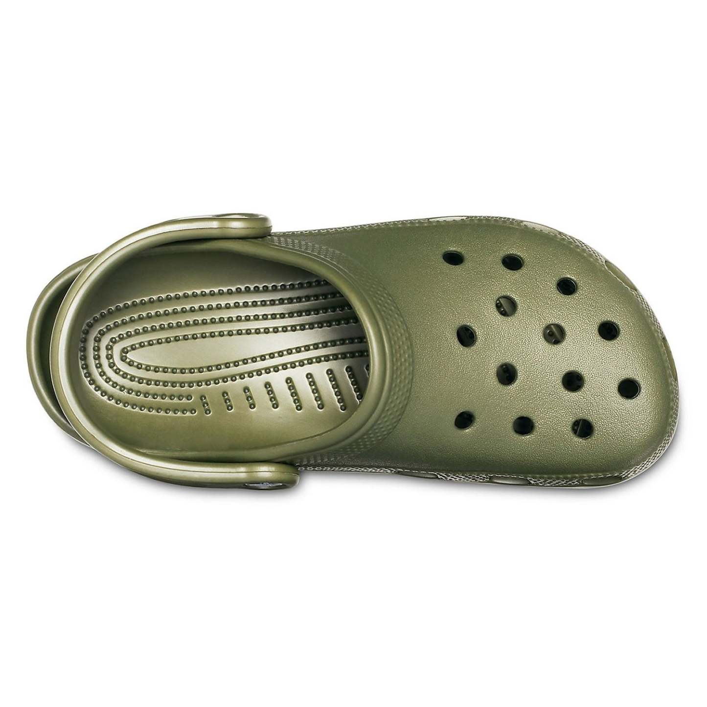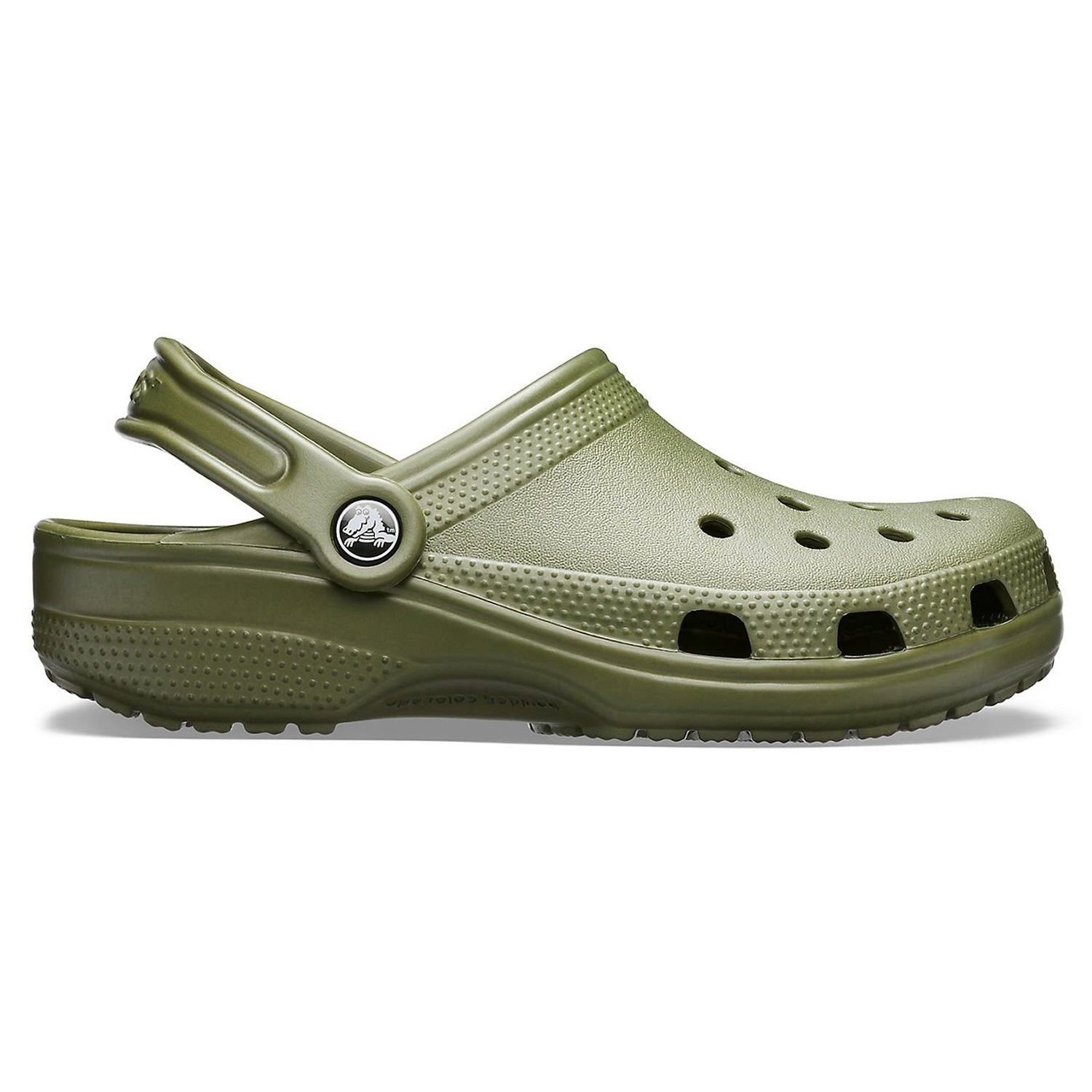 Fully-moulded Croslite material construction for lightweight cushioning. Massage-pod footbed feels good. Heel strap. Non-marking Croslite material outsole. Accepts Jibbitz.