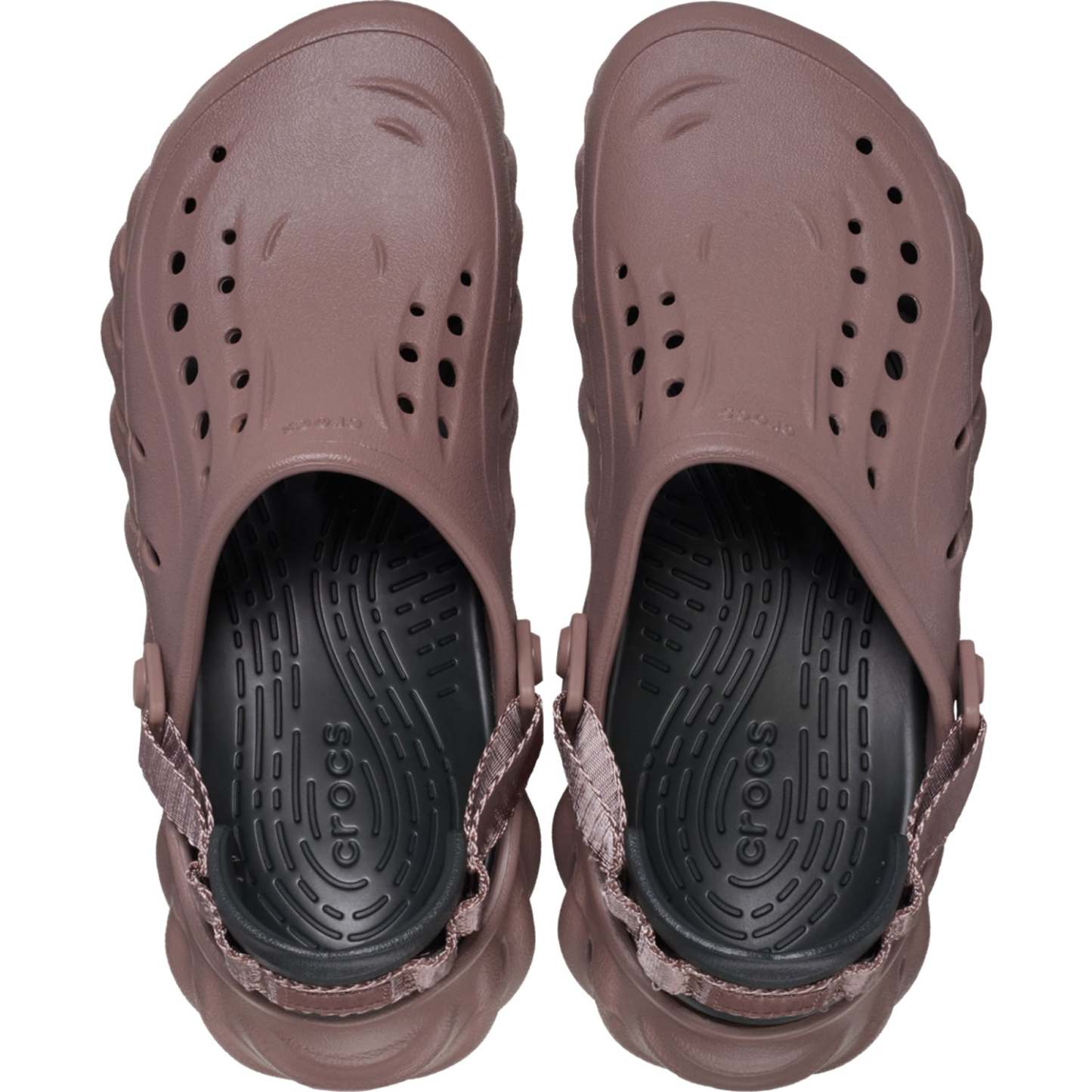 Comfort and style for these Echo clogs. Bold sculpting to keep it cool. Fully-moulded Croslite material construction for lightweight cushioning. Heel strap. Accepts Jibbitz.