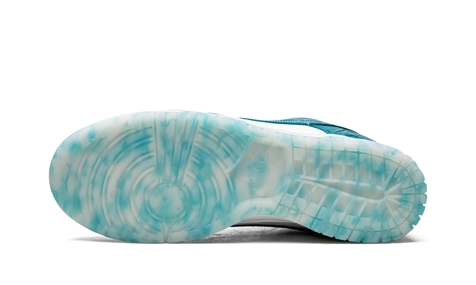 The Women’s Nike Dunk Low “Ocean” features an interesting blend of materials and patterns to bring this water-inspired colorway to life. The sneaker features a white tumbled leather upper with teal blue rough-textured overlays resembling the surface of the ocean. Circular ripple patterns are on the tongue tag and insoles, and additional branding accents are found on the Nike-embroidered heel tab. Below is a crisp white rubber midsole and a translucent outsole with a marbled white and blue graphic underneath to further the watery theme.