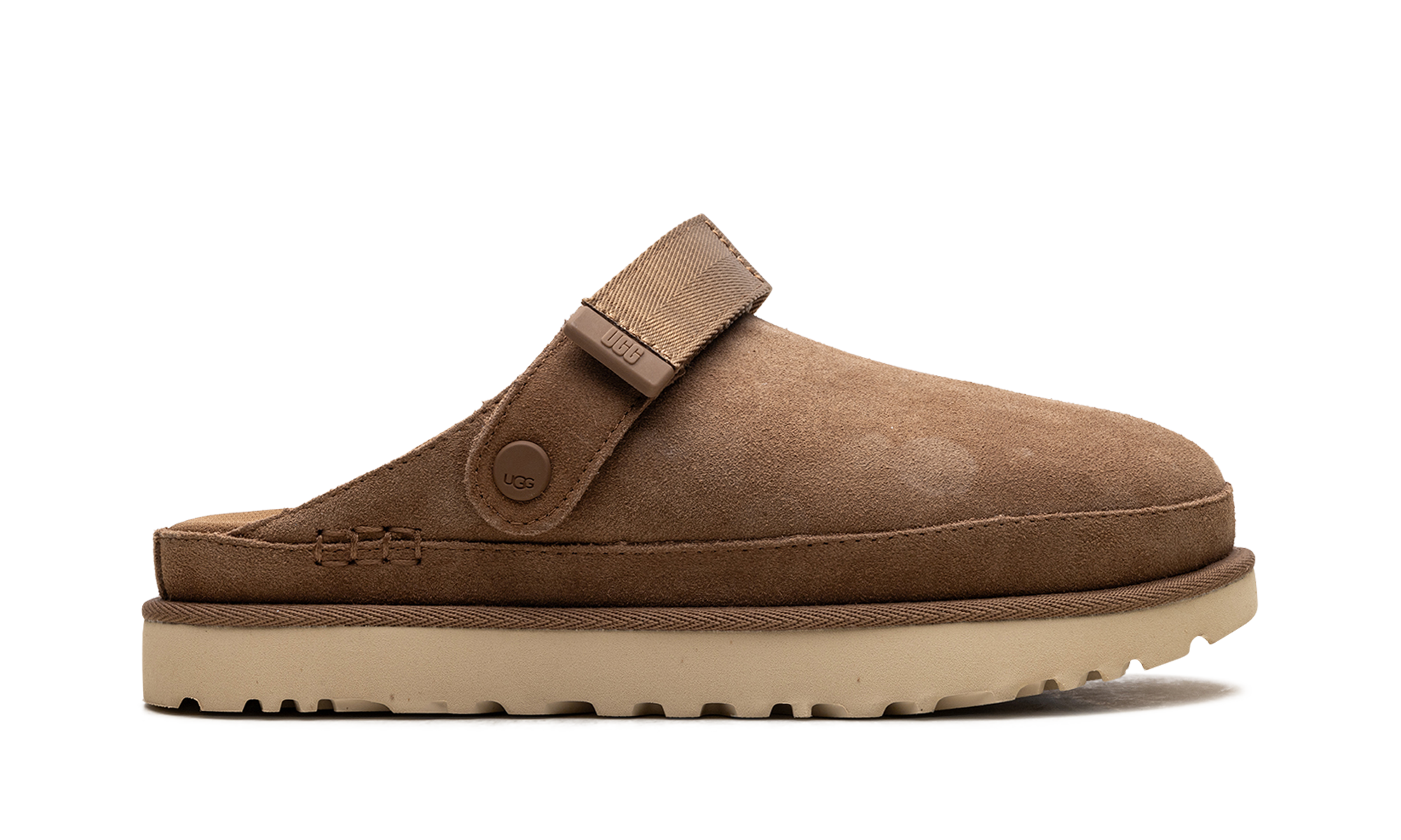 Step into effortless comfort with the UGG Goldenstar Clog Wmns "Chestnut". This women's backless mule features a soft suede upper in a rich chestnut hue. The contoured footbed delivers superior cushioning and support, making it a perfect choice for quick transitions and stylish, all-day wear.
