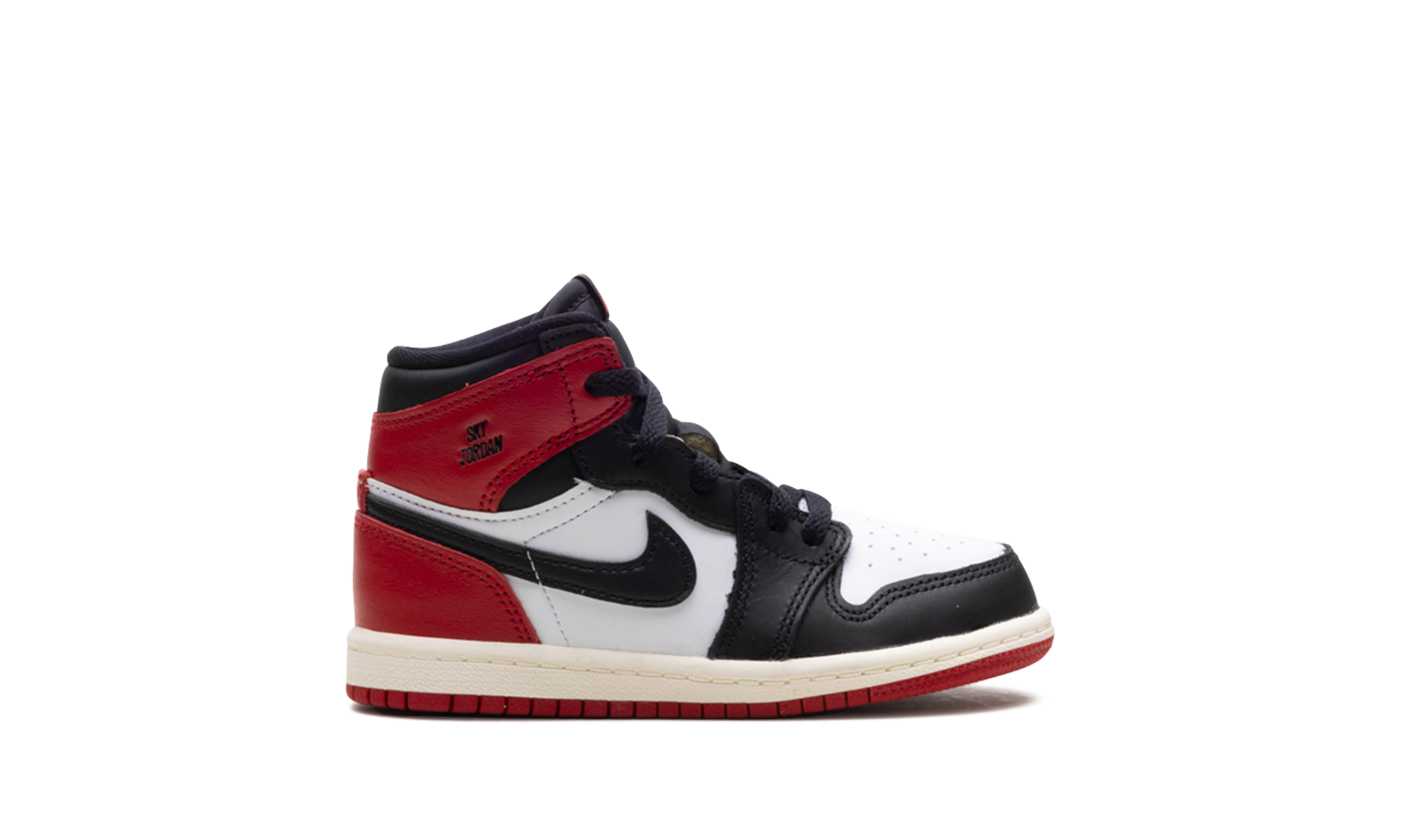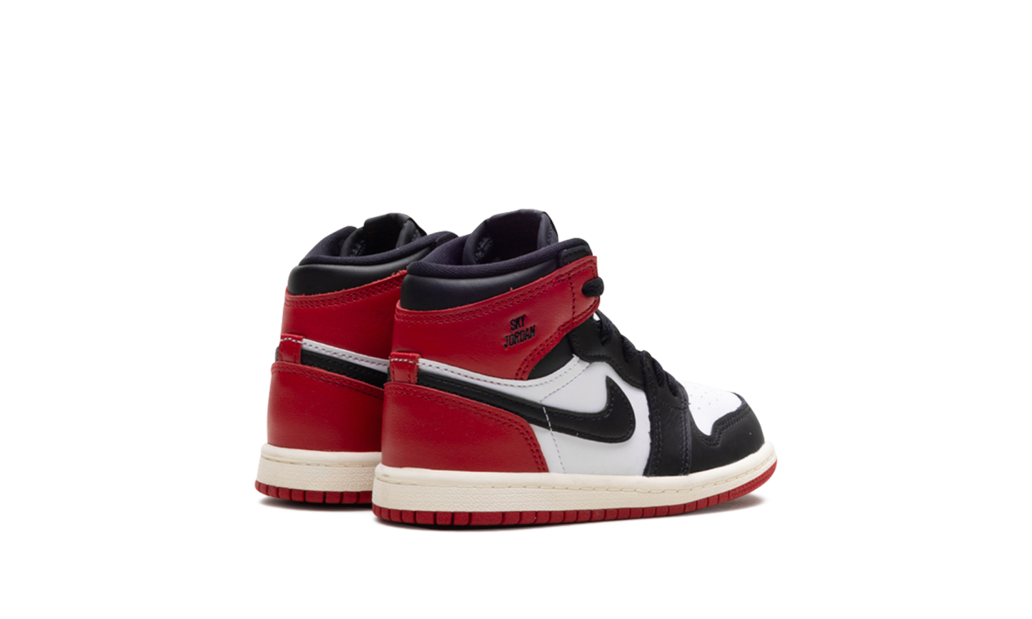 Start your toddler’s collection with a piece of unparalleled heritage: the Air Jordan 1 Retro High OG TD 'Black Toe Reimagined,' the definitive "Mini Prototype." This iconic Toddler-sized shoe faithfully reproduces the colorway of Michael Jordan's 1985 player exclusive sample. It features a leather upper in White, Black, and Varsity Red, swapping the traditional Wings logo for the early-era "Air Jordan" text on the collar. The classic high-top cut provides ankle support, while the durable rubber outsole delivers confident grip for their first steps and beyond.