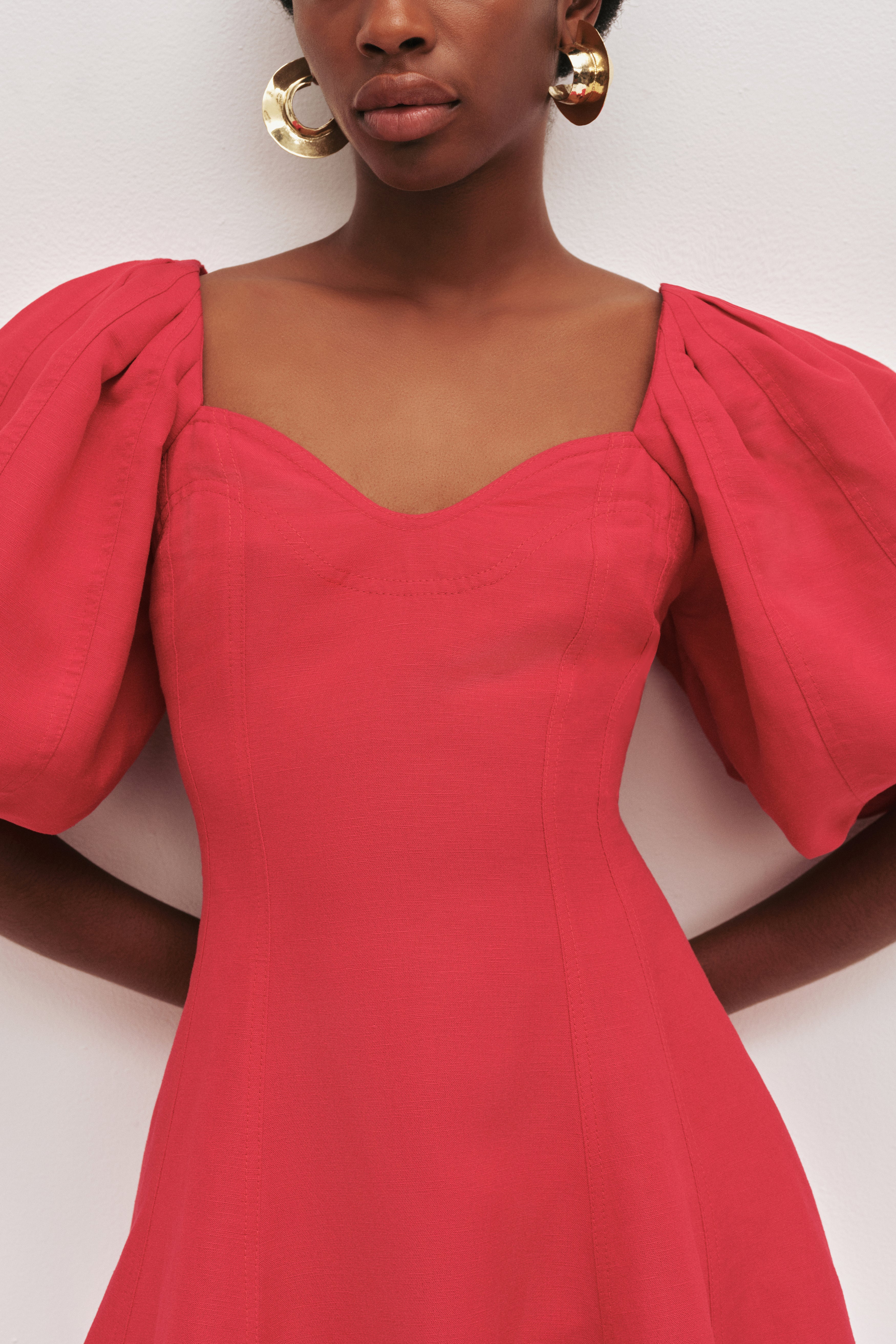 - Puff sleeves with seaming detail
